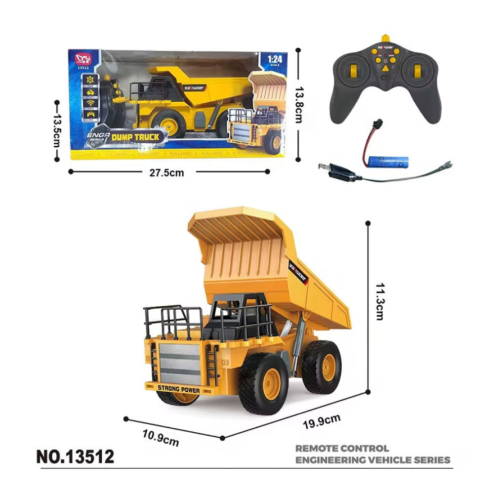 Este camión volquete de construcción a control remoto a escala 1:24 es un juguete único que encantará a cualquier aficionado a los camiones. Fabricado con gran atención al detalle, reproduce fielmente un vehículo de construcción real, ofreciendo a los niños una experiencia realista de trabajar en una obra. El modelo está equipado con una función de autodescarga, gracias a la cual puede subir y bajar la caja de carga, simulando el funcionamiento real de un volquete.