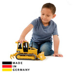 Este tipo de máquina de trabajo, llamado tractor de cadenas en el lenguaje especialista, se emplea en el caso de tareas difíciles de arrancado y desescombro y en terrenos abruptos. BRUDER como titular de la licencia internacional de CATERPILLAR del sector de maquetas de vehículos de juguete de plástico cuenta con un modelo así a escala 1:16. Con el tractor de cadenas que dispone de una pala de la niveladora que se puede girar e inclinar para todo tipo de tareas de desescombro y nivelado y con cuya escarificadora de varios dientes se puede esponjar hasta el terreno más difícil, se puede recrear la realidad como es habitual en Bruder. La cadena de eslabones individual de verdad proporciona al vehículo excelentes cualidades de rodadura. El tractor de cadenas es uno más de los vehículos del "programa de vehículos pequeños" BRUDER que tanto éxito ha cosechado. De esta manera, Bruder vuelve a demostrar que es posible crear juguetes de alta calidad, "made in Germany", a precios asequibles y que son muy valorados por parte de los consumidores.