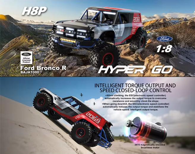 El MJX H8P es un crawler de alta gama que combina potencia y realismo extremo. Basado en el exitoso H8H, esta versión destaca por su carrocería con licencia oficial de Ford Bronco y una estructura reforzada con ejes de metal.