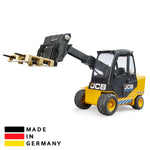 BRUDER steht für aktives Spielen und Entdecken, so auch bei diesem neuen Gabelstapler. Der JCB 30-19E Teletruk gehört zur neuen Generation innovativer Produkte namens JCB E-TECH, ist mit Elektroantrieb und null Emissionen am Einsatzort ausgestattet und so leistungsstark wie eh und je. Dank des neuen Teleskopauslegers bietet er maximale Effizienz und verrichtet seine Arbeit emissionsfrei für die Umwelt. Dieser revolutionäre Teleskopstapler ist als neues Modell in der BRUDER Themenwelt Nutzfahrzeuge erhältlich. Der hinterachslenkbare Gabelstapler bietet Platz für eine bworld Figur im modernen Fahrerhaus. Der höhenverstellbare Teleskopausleger lässt sich ein- und ausklappen sowie feststellen und der Gabelwinkel ist einstellbar. Dank der serienmäßigen BRUDER Halterung finden verschiedenste Werkzeuge Platz und das Zubehörset mit Drahtpalette, Seilwinde und Gabeln (Art.-Nr. 02318) ist die perfekte Ergänzung für noch mehr Spielspaß.