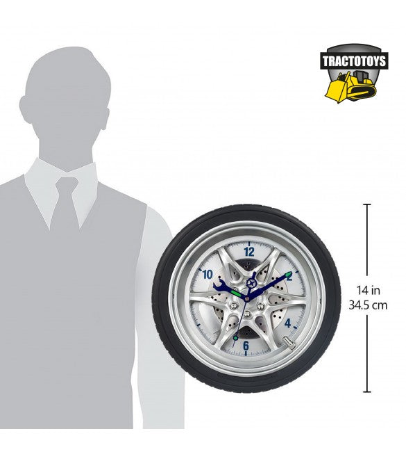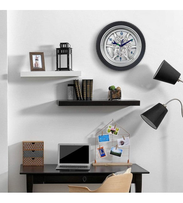 Catch everyone's eye with our modern tire clock. The tire-shaped design is inspired by the popular vehicle tire. The stylish rim design creates a unique industrial-style decor for your bedroom, kitchen, office, car enthusiast's room, or mechanic's shop.