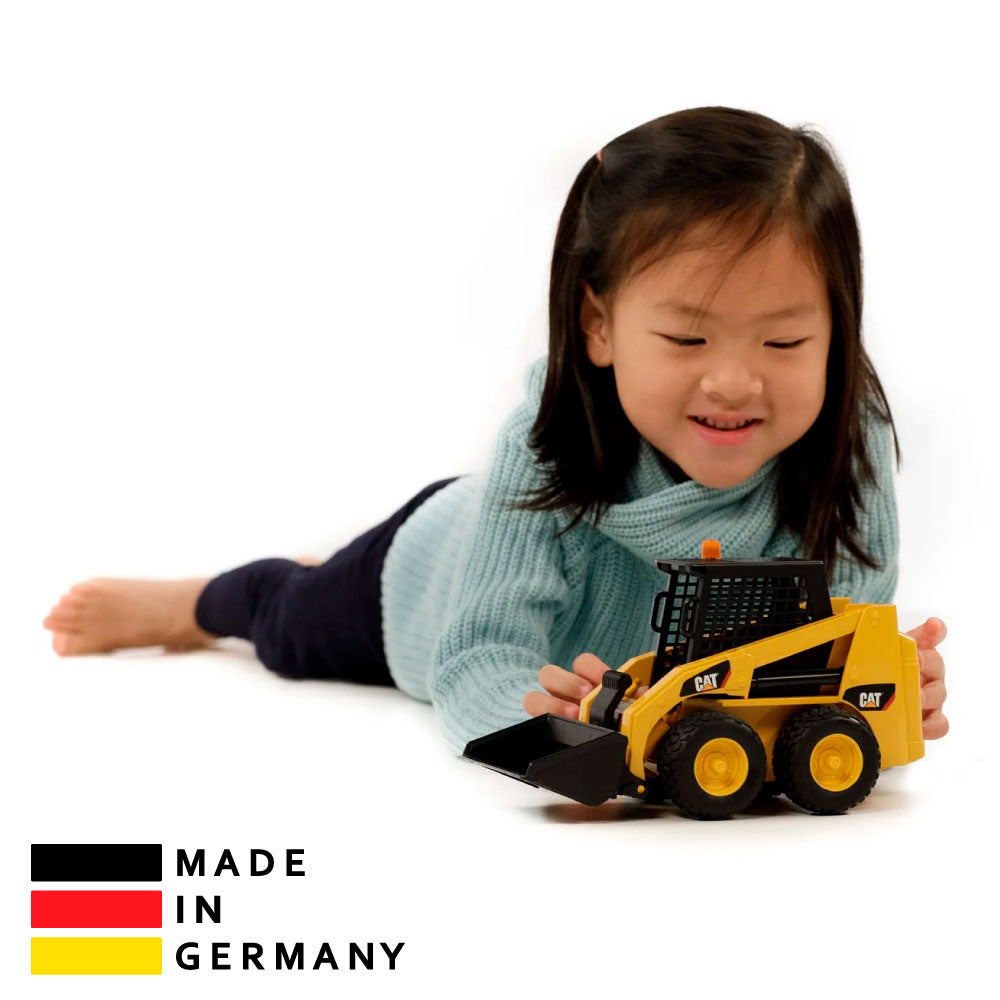 Thanks to its great versatility, the Cat compact loader is the ideal machine for construction, landscaping, and agriculture, among others. Like its larger model, the BRUDER Cat compact loader is equipped with a working loading arm. In addition, the detachable, tilting front loader can be equipped with numerous attachments, and the profiled tires complete the package.