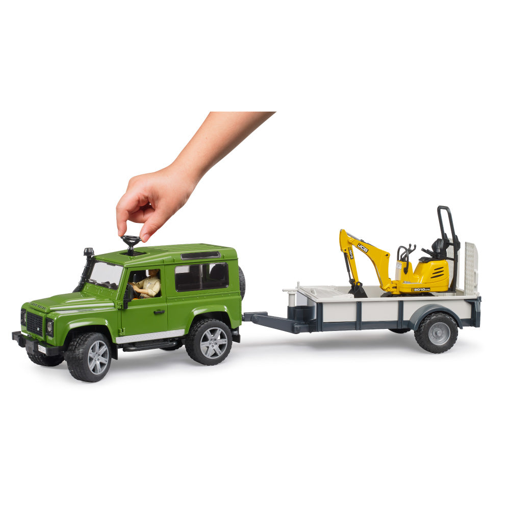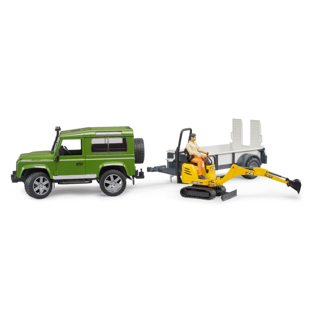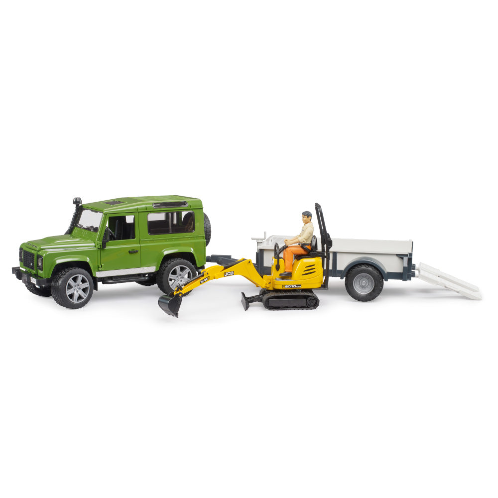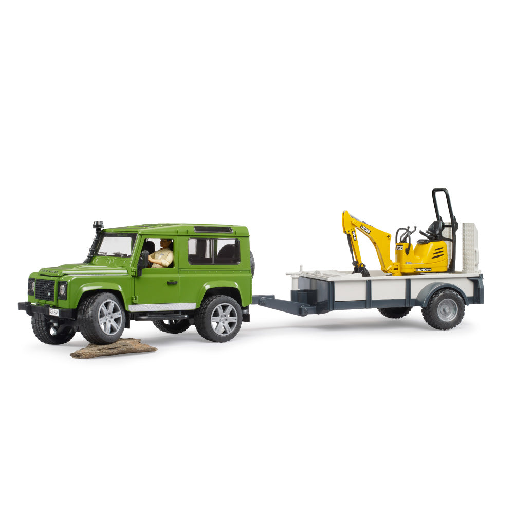Fascinating off-road quality and timeless Land Rover design combined with the detailed JCB micro excavator from the new bworld series: exactly what little construction workers need. Not only will the resulting model delight Land Rover fans with its surprising details, such as the embossed frame plate on the engine hood and numerous playable functions. The rear and side doors can be opened, and the rear seat can be removed. The matching micro excavator also impresses with its details. All figures from the bworld series fit perfectly in their seats. With the additional help of the rotating chassis, work can be done on any small construction site. The single-axle trailer, featuring an opening tailgate and profiled tires, is also included in the scope of delivery. This set has everything you need, except, of course, the creativity needed to recreate many fascinating situations from the everyday life of construction workers for years to come.