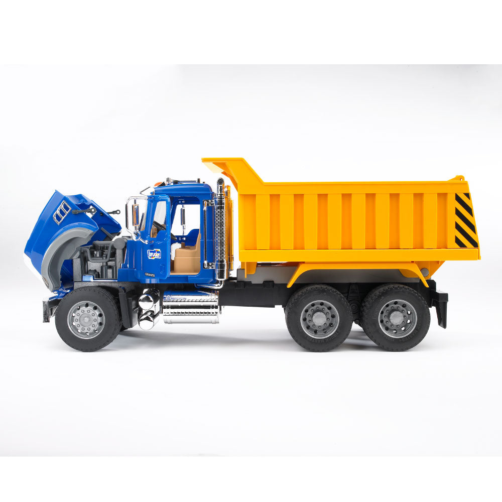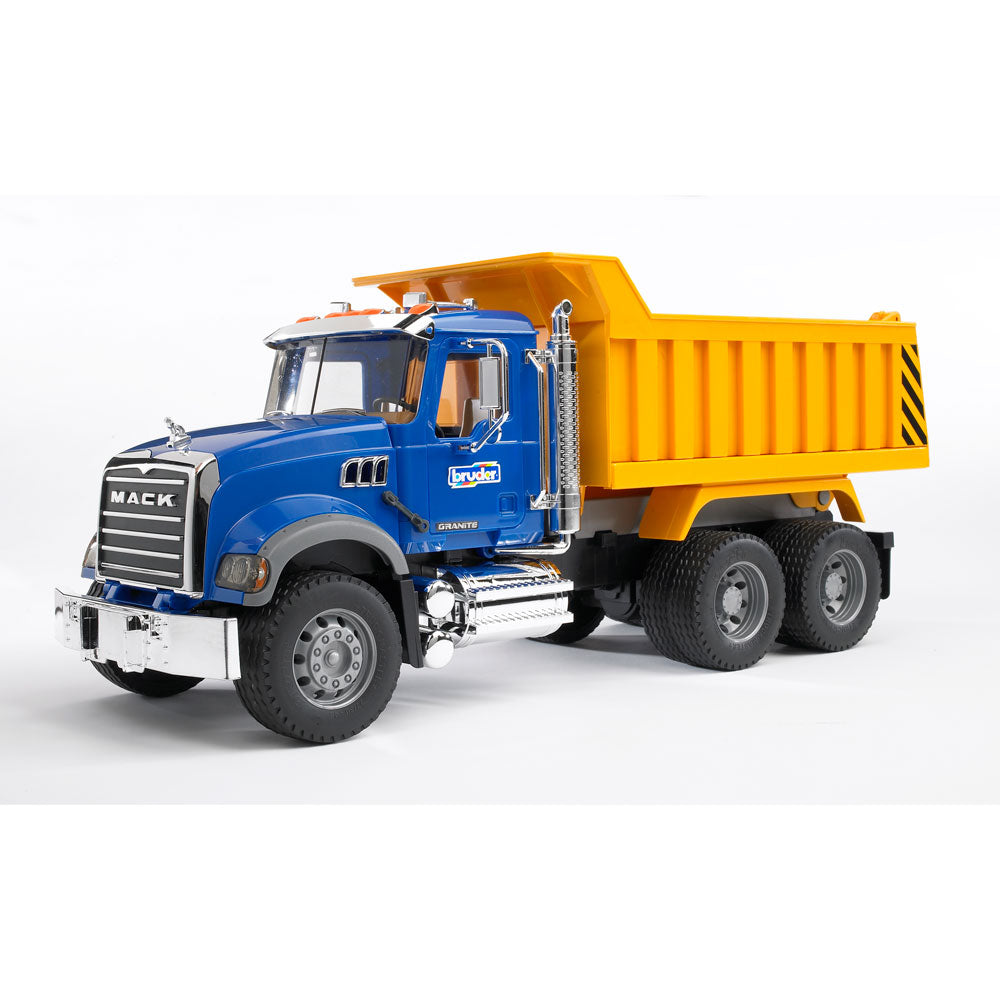 To expand your play options, you can connect a Rake Blade (Item No. 02573), Sweeper Machine (Item No. 02577), or Cable Winch (Assortment Item No. 02008) (not included) to the receiver on the MACK Granite bumper.