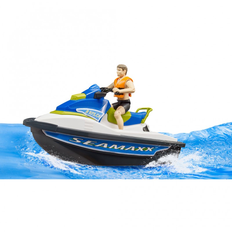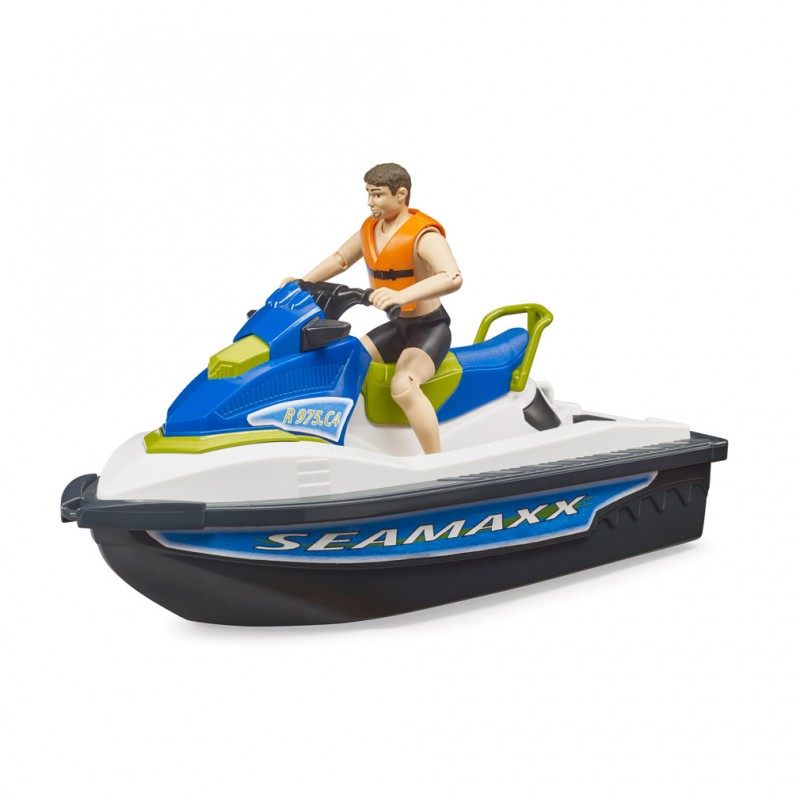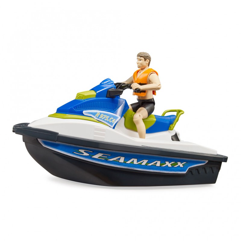 Seaside vacations are still the quintessential holiday for many people. Sun, sea, and sandy beaches are the ingredients that ensure a wonderful vacation. Jet skis are seen on many beaches. These motorcycles are rented to tourists, but are also used as vehicles for coastal rescue operations. The new BRUDER jet ski has an unsinkable structure that easily refloats the motorcycle in the event of a capsize and has space for two bworld figures. The rider already has all the necessary equipment to immediately begin his or her water adventures.
