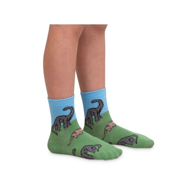 You'll have prehistoric fun with these dinosaur-patterned boys' socks. Carnivores and herbivores frolic and roam side by side in these socks to help spark little ones' imaginations. These socks easily match all children's clothing and shoes. The cotton-rich construction keeps feet comfortable. Ideal for everyday active play.